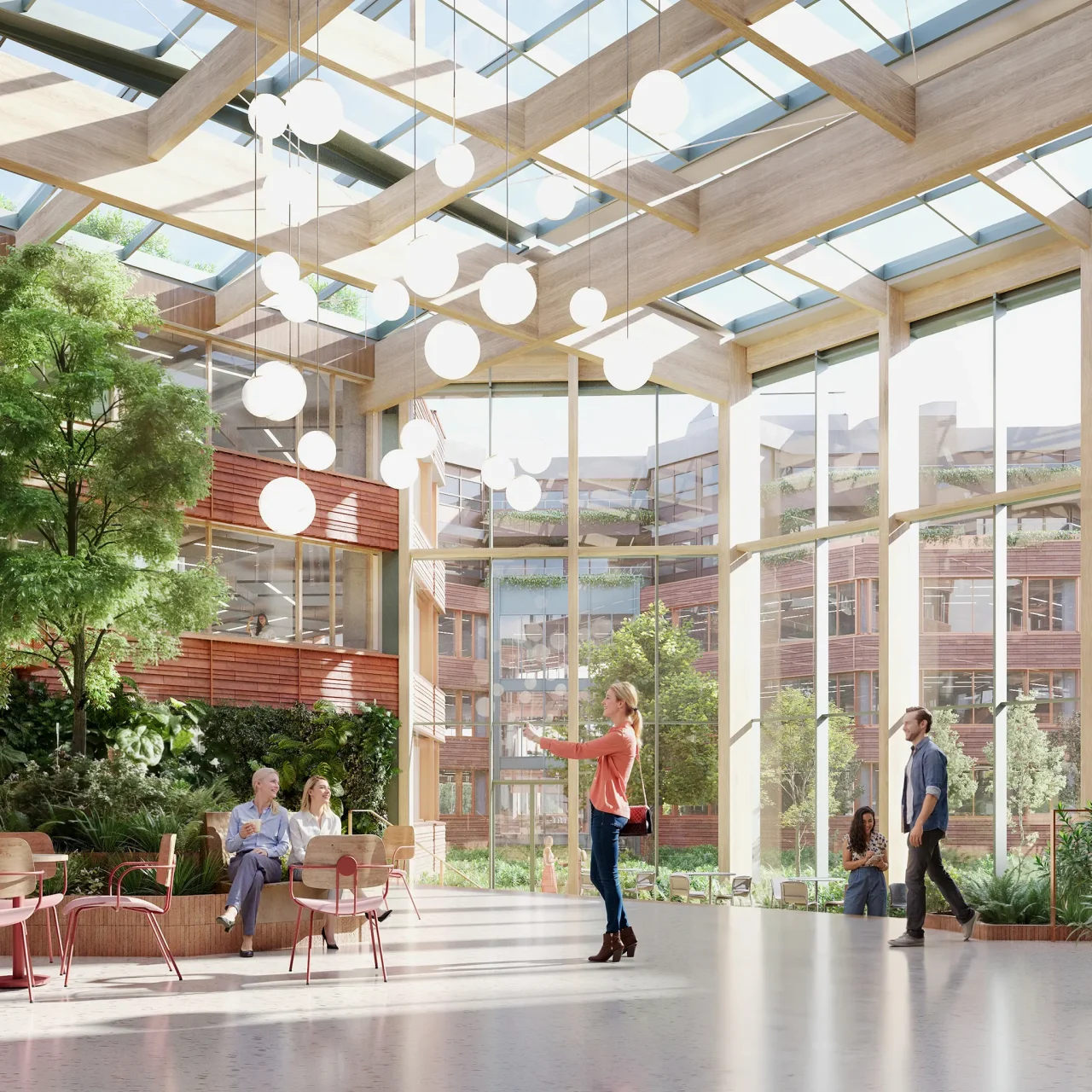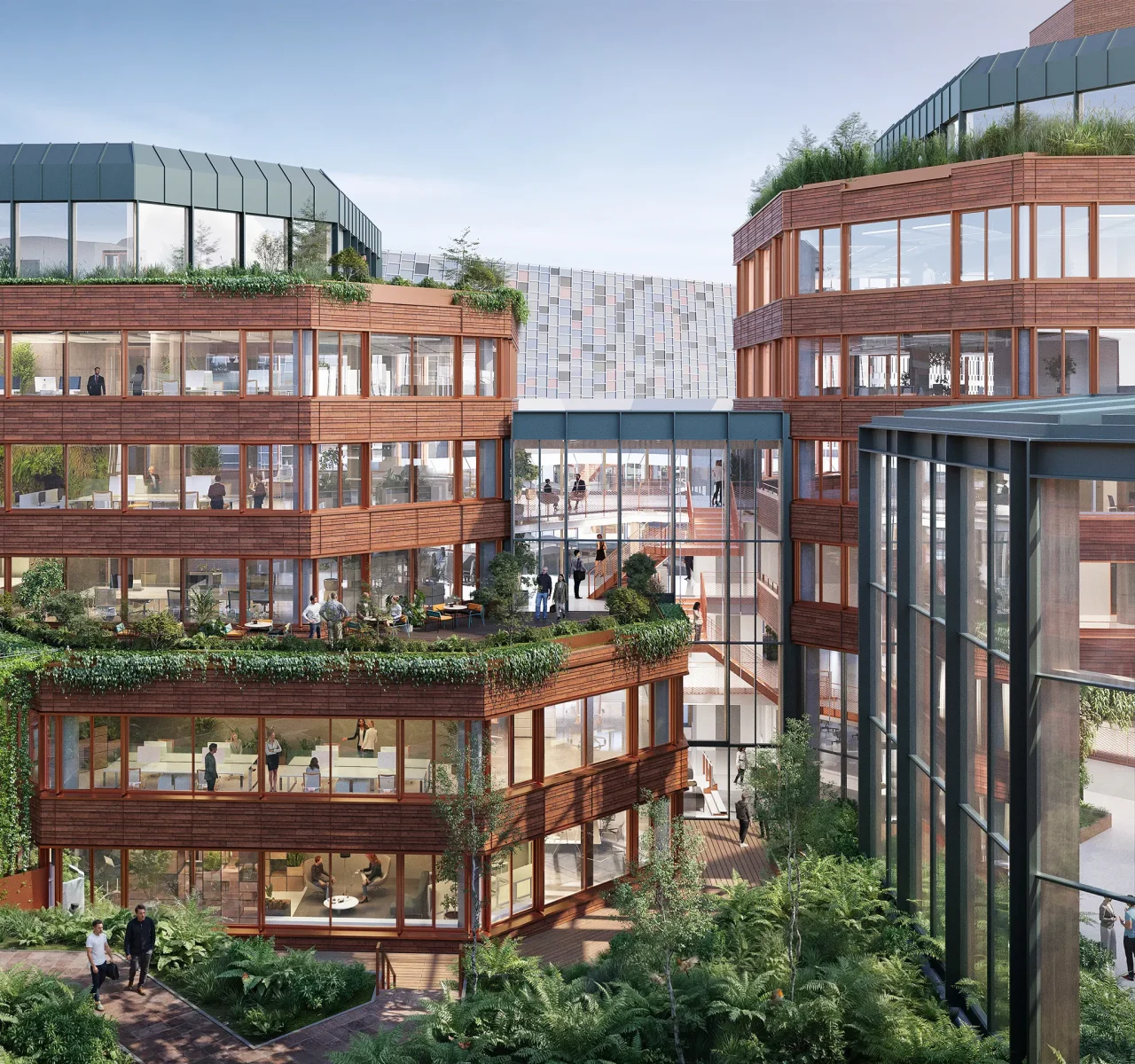 Van centrale binnentuin tot weelderige daktuinen: de natuur is altijd dichtbij. Hier vervagen binnen en buiten. Licht, lucht en groen op alle verdiepingen, op elke werkplek. Verbinding met de seizoenen. Voor meer creativiteit, minder stress.